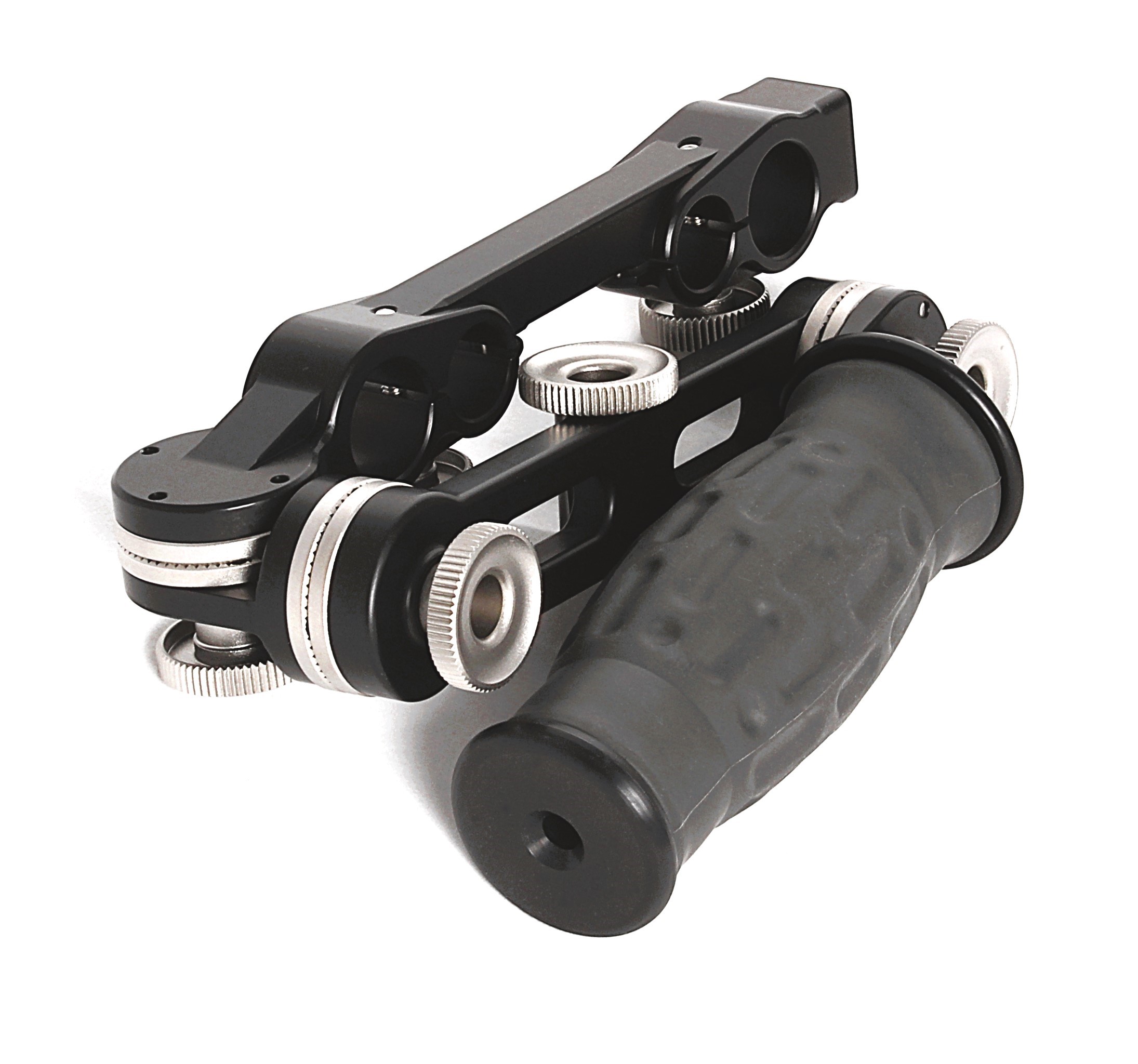 Straight angled handgrip-Unlike the standard Spidergrips set with handles set nominally at an eight-degree pronated angle, this Spidergrips set’s handlegrips are more traitional by design. These Spidergrips handset straight-angle handles are set perpendicular to the horizontal plane of the camera. This Spidergrips handset offers greater support for operating a more front-heavy camera, bringing your elbows closer to your body.