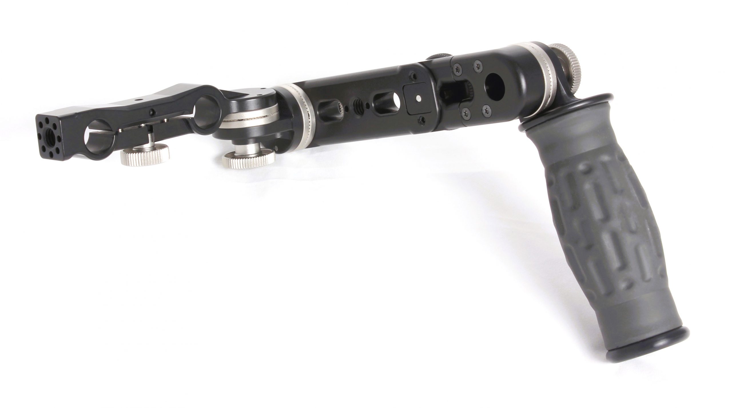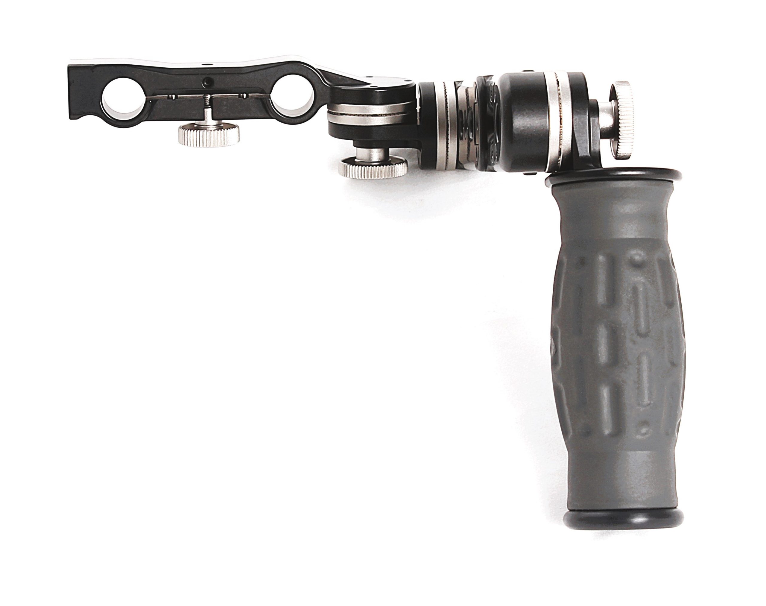 Straight angled handgrip-Unlike the standard Spidergrips set with handles set nominally at an eight-degree pronated angle, this Spidergrips set’s handlegrips are more traitional by design. These Spidergrips handset straight-angle handles are set perpendicular to the horizontal plane of the camera. This Spidergrips handset offers greater support for operating a more front-heavy camera, bringing your elbows closer to your body.