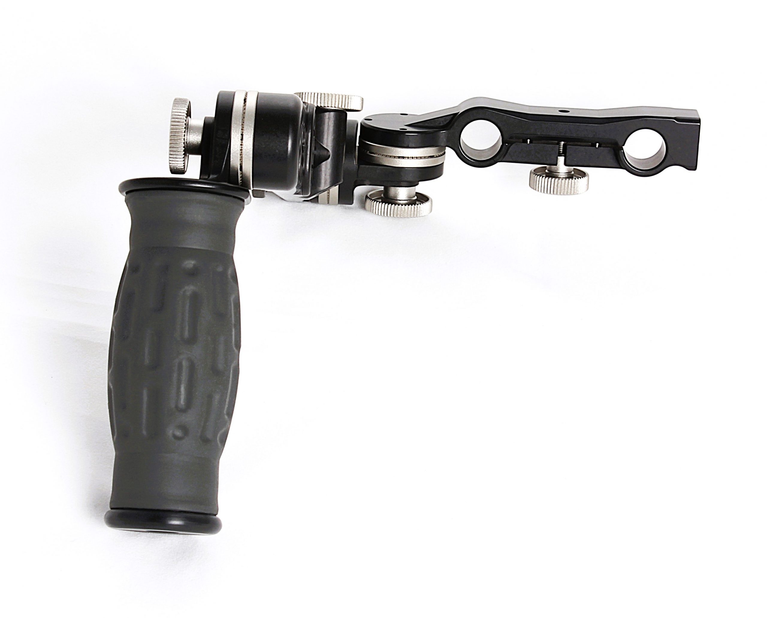 Straight angled handgrip-Unlike the standard Spidergrips set with handles set nominally at an eight-degree pronated angle, this Spidergrips set’s handlegrips are more traitional by design. These Spidergrips handset straight-angle handles are set perpendicular to the horizontal plane of the camera. This Spidergrips handset offers greater support for operating a more front-heavy camera, bringing your elbows closer to your body.