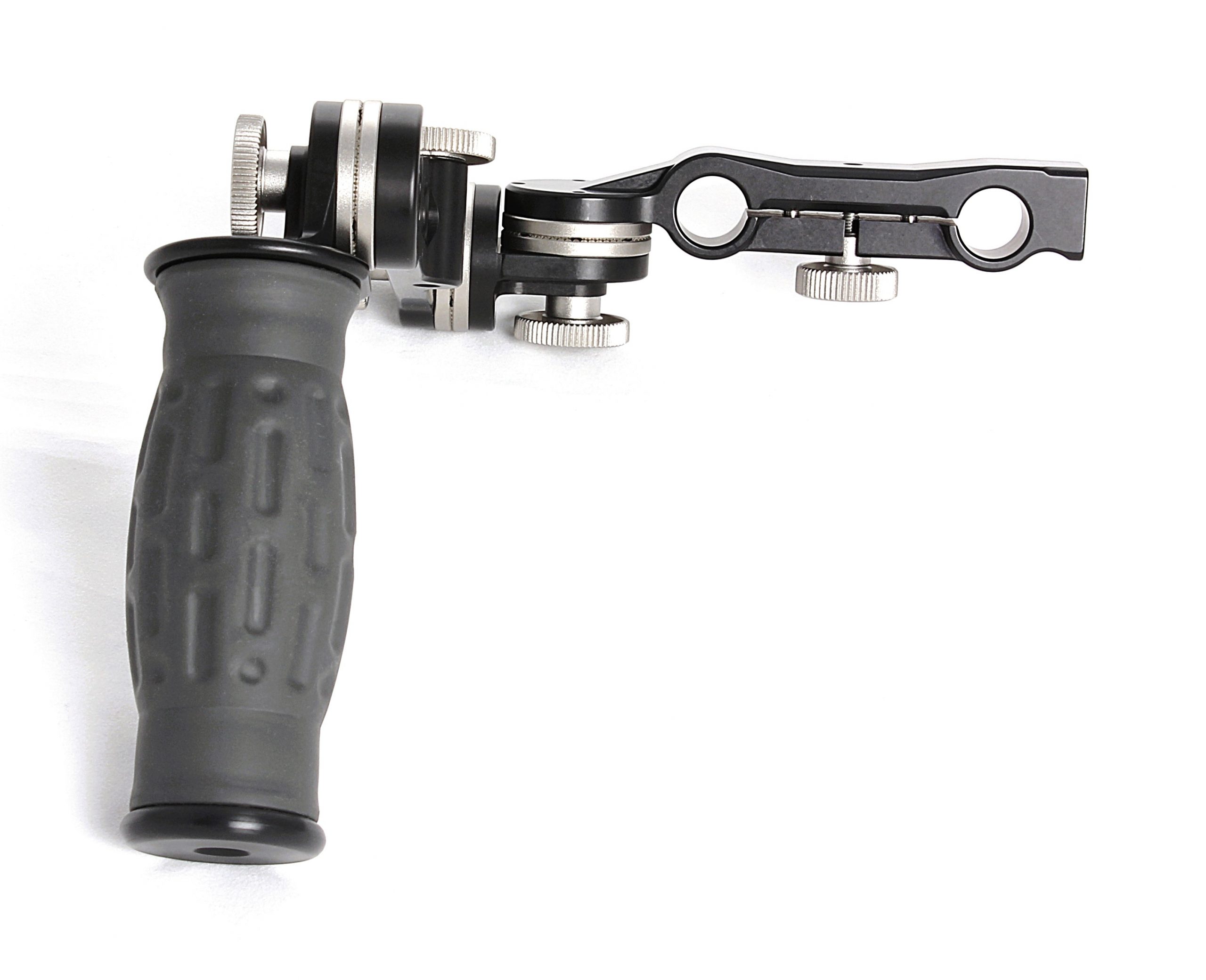 Straight angled handgrip-Unlike the standard Spidergrips set with handles set nominally at an eight-degree pronated angle, this Spidergrips set’s handlegrips are more traitional by design. These Spidergrips handset straight-angle handles are set perpendicular to the horizontal plane of the camera. This Spidergrips handset offers greater support for operating a more front-heavy camera, bringing your elbows closer to your body.